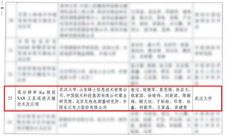 2024年10月22日,根据《自然资源部关于2023年度自然资源科学技术奖获奖成果的公告》,浪潮智慧产业权属山东锋士信息技术有限公司与武汉大学、中国航天科技集团有限公司第五研究院、北京无线电测量研究所、中国长江电力股份有限公司联合研制的“高分辨率Ka频段SAR卫星遥感关键技术及应用”项目成果荣获测绘组科技进步奖一等奖。