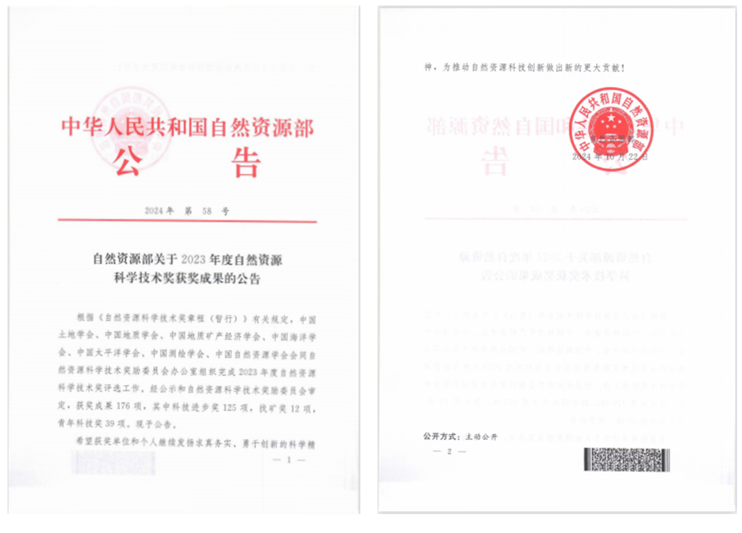 自然资源部关于2023年度自然资源科学技术奖获奖成果的公告