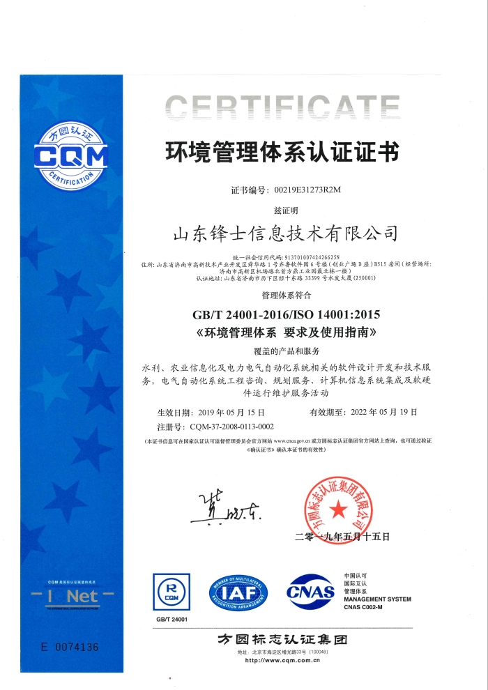 环境管理体系认证证书