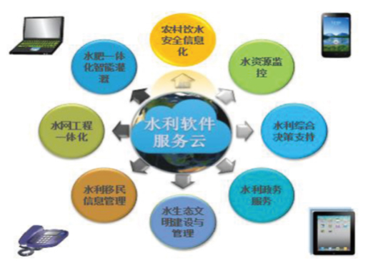 水利软件服务云可为水利部门提供水利信息实时监测服务、水利工程视频监控服务、视频会议和应急指挥服务、数据采集直报服务、主题分析和数据挖掘服务、权限管理与身份认证服务、密钥管理与数据加密服务等。